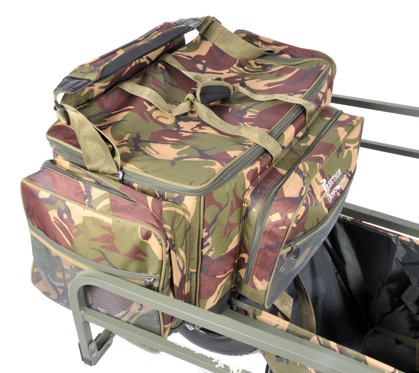 The DPM Monster Carryall is not only a massive, useful carryall but it fits on the front bar of all Carp Porters. This avoids load shifting and aids stability.